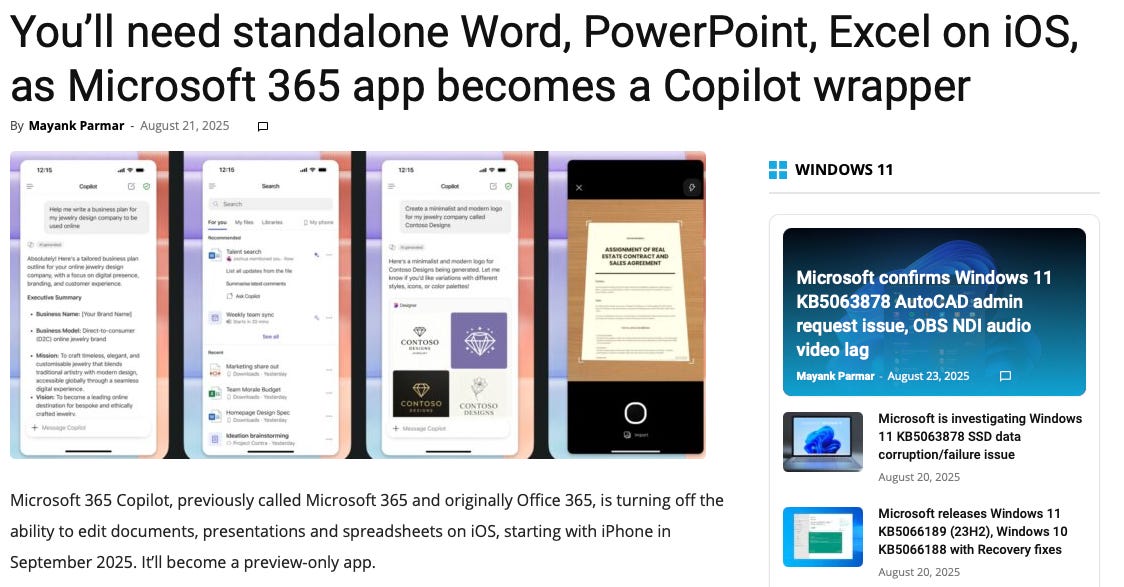 Do you use the Microsoft Copilot 365 app on your iPhone or iPad? If yes, DO NOT update that app next month. Do yourself a favour. Do NOT update.
